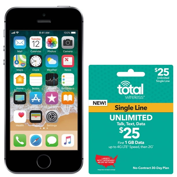 Total Wireless Apple Iphone Se 32gb Space Gray Grade A Refurbished Prepaid Smartphone With 25 Plan Walmart Com